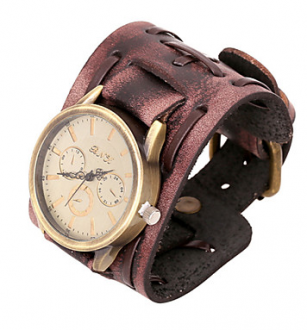 Häftigt läderarmbandsur med riktigt cool steampunk utseende.