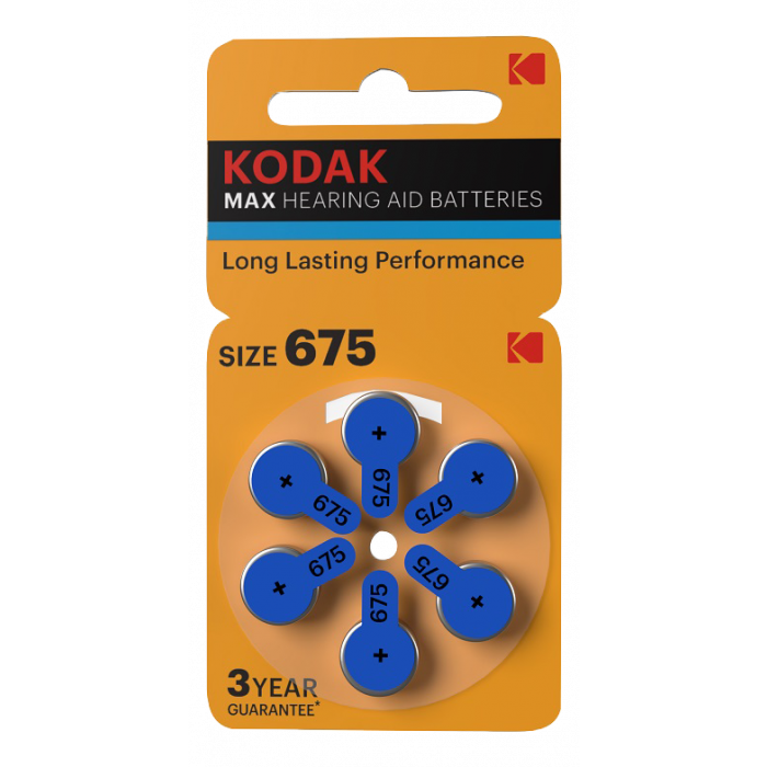 KODAK Hörapparatsbatteri Modell P675/PR44, Färgkod: Blå, 1,45v, 6-pack